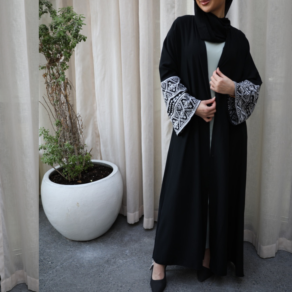 IT'S ALL IN THE SLEEVES WITH OUR BOHO STYLE AZURA ABAYA WITH INTRICATE WOVEN-DETAILING GIVING IT A TRADITIONAL AND CHIC LOOK.